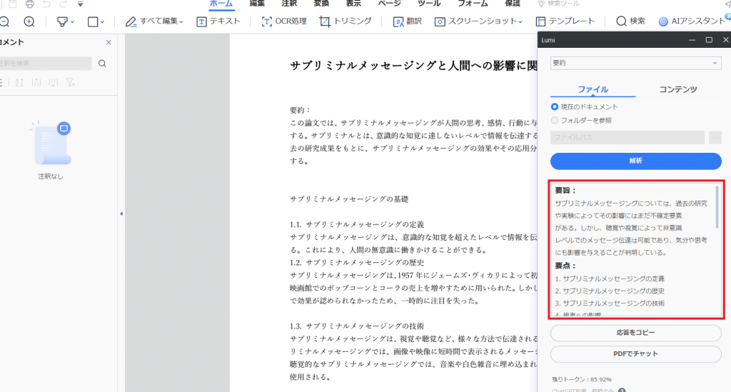 自動要約機能は非常に便利ですが、完全な要約結果が得られるとは限りません。特に、複雑な文章や専門的な内容の文章については、要約結果が不十分な場合があります。そのため、要約結果を活用する際は、原文を適宜参照し、要約結果の正確性を確認することが重要です。