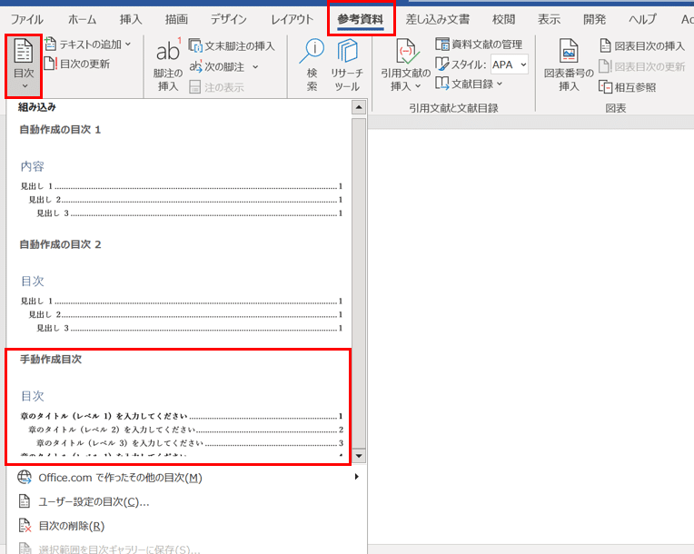 - ç®æ¬¡ã®åœ¢åŒãéžæããŸããèªåçã«çæãããç®æ¬¡ãæ¿å ¥ãããŸãã