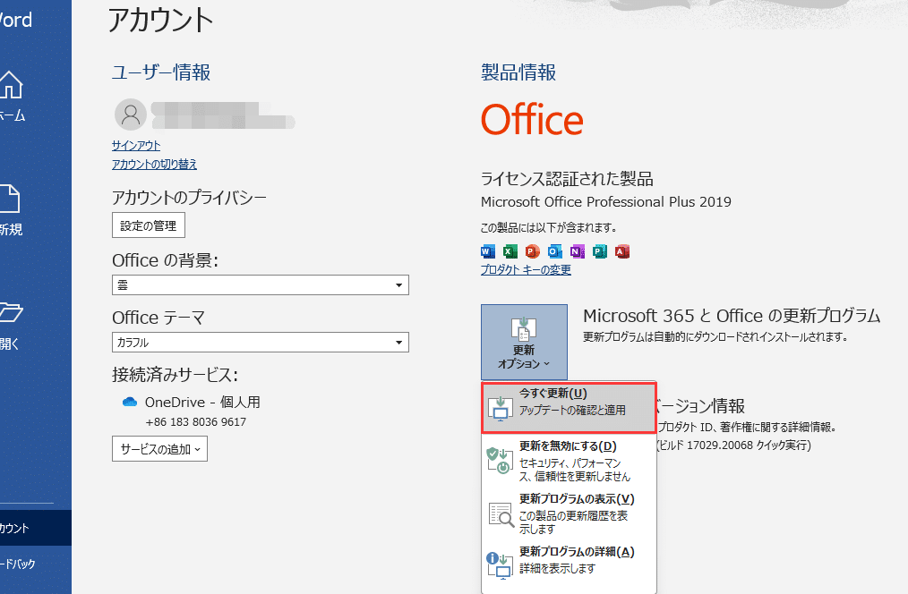 - アプリケーションの更新:ワードのアップデートをチェックし、最新バージョンに更新してください。