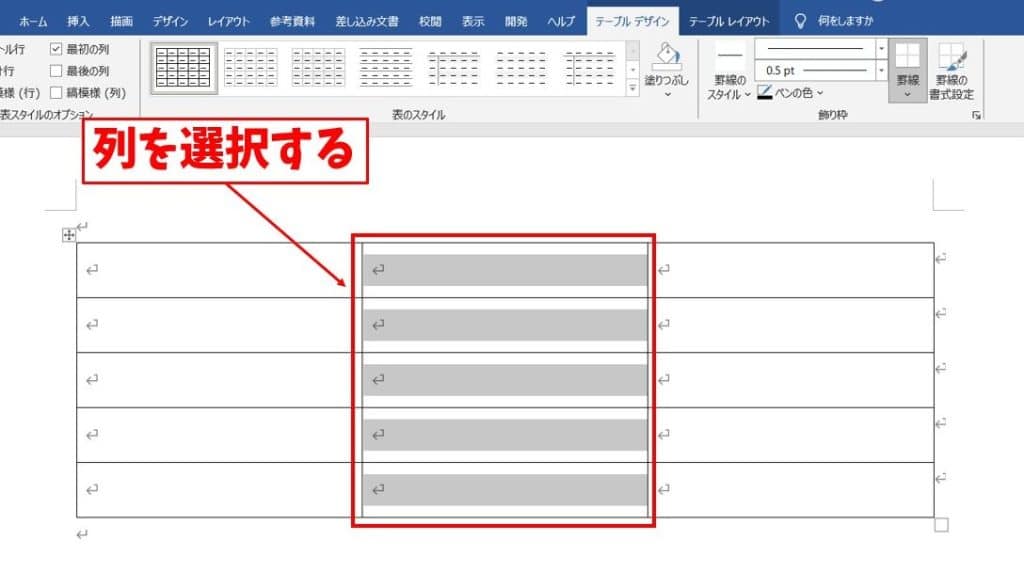 - ã¯ãŒãææžã§ã眫ç·ãåé€ããã衚ãéžæããŸãã